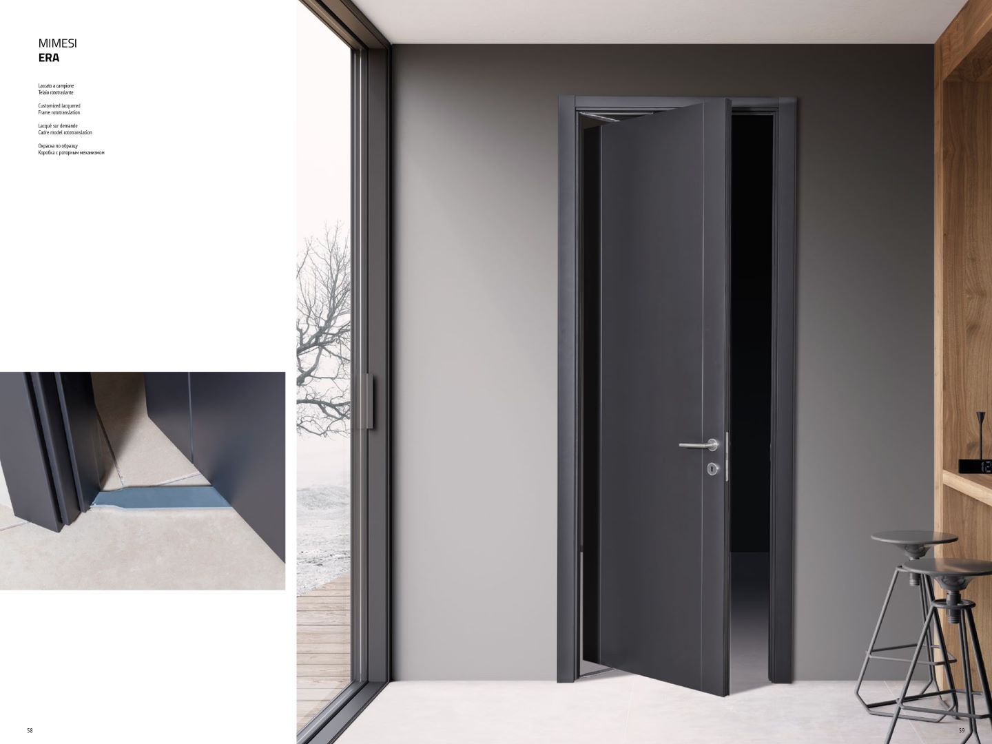produzione industriale mantenendo nel proprio dna, l’attenzione al dettaglio, al su misura.... insomma al progetto. Nascono così le porte per interni destinate all’ambito residenziale o al settore contract, soluzioni dall’estetica essenziale o più elaborata, personalizzabili per finitura, design, colore, o tipologia di apertura.